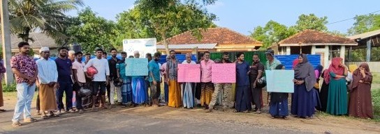 இதன்போது ஆர்ப்பாட்டத்தில் ஈடுபட்டவர்கள் கிராம சேவையாளர், அபிவிருத்தி உத்தியோகத்தர், சமுர்த்தி; உத்தியோகத்தர்களுக்கு எதிராக பதாதைகளை தாங்கி இருந்ததோடு கோஷங்களையும் எழுப்பி இருந்தனர்.