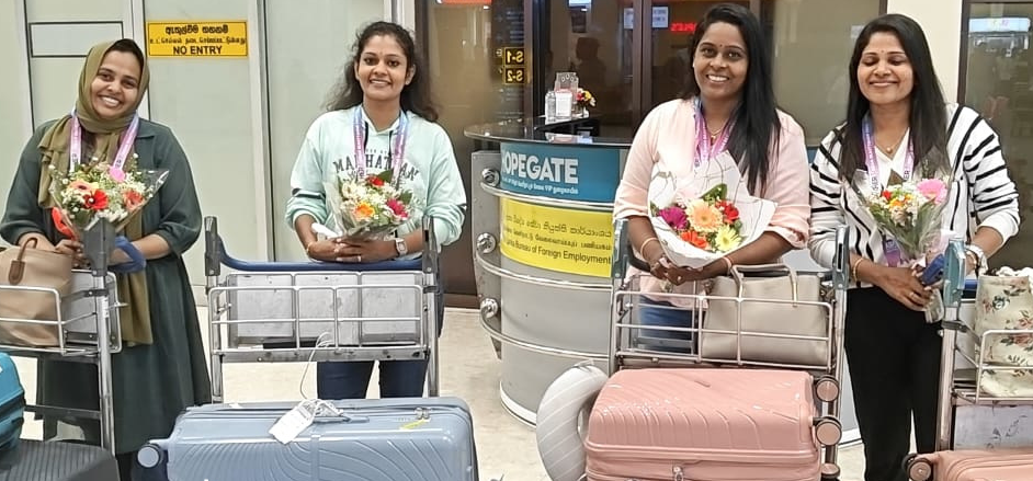 மலேசிய அழகுக்கலை போட்டியில் ஐந்து பதக்கங்களைக் கைப்பற்றி சாதனை படைத்த இலங்கைப் பெண்கள் நாடு திரும்பினர்.