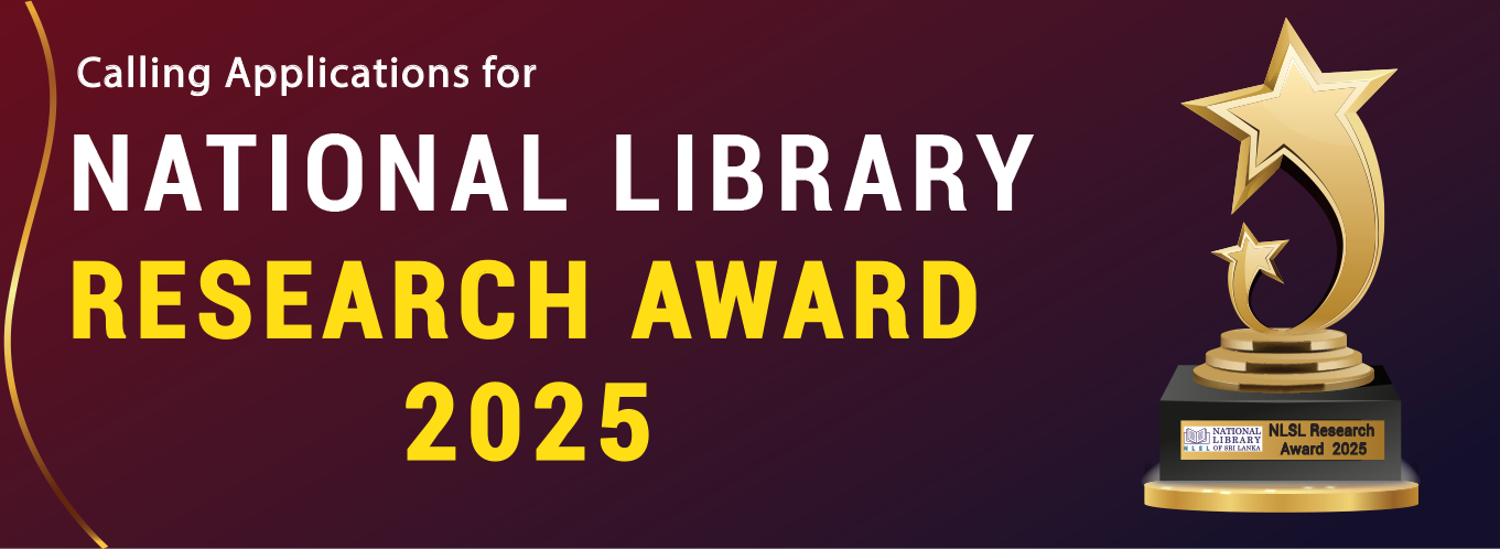 இலங்கைத் தேசிய நூலகம் மற்றும் தேசிய நூலக ஆவணமாக்கல் சேவைகள் சபையினால் தேசிய நூலக ஆராய்ச்சி விருதுக்கு விண்ணப்பம் கோரப்பட்டுள்ளது.