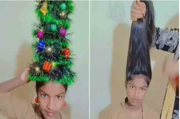 இன்ஸ்டாகிராமில் பகிரப்பட்டுள்ள அந்த வீடியோவில், கிறிஸ்துமஸ் பண்டிகையை முன்னிட்டு உருவாக்கப்பட்ட ஒரு தனித்துவமான சிகை அலங்காரம் இடம் பெற்றுள்ளது.