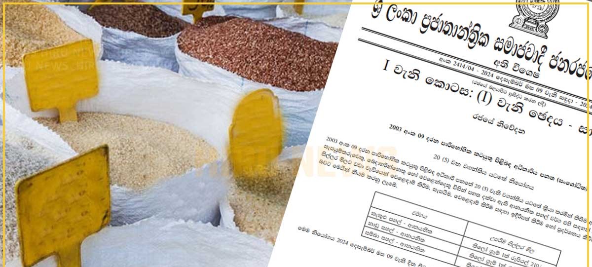 இறக்குமதி செய்யப்படும் சில அரிசி வகைகளுக்கு அதிகபட்ச சில்லறை விலையை நிர்ணயித்து அதிவிசேட வர்த்தமானி வெளியிடப்பட்டுள்ளது.