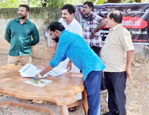 திருகோணமலை, உப்புவெளி பிரதேச சபைக்கு உட்பட்ட மூன்றாம் கட்டைபகுதியில் பயங்கரவாத தடைச்சட்டத்தை நீக்குமாறும்,இதற்க பதிலாக கொண்டு வரப்படவுள்ள புதிய சட்டத்தை நிறுத்துமாறு வலியுறுத்தியும் கையெமுத்துப் போராட்டம் நேற்று செவ்வாய்க்கிழமை இடம்பெற்றது.