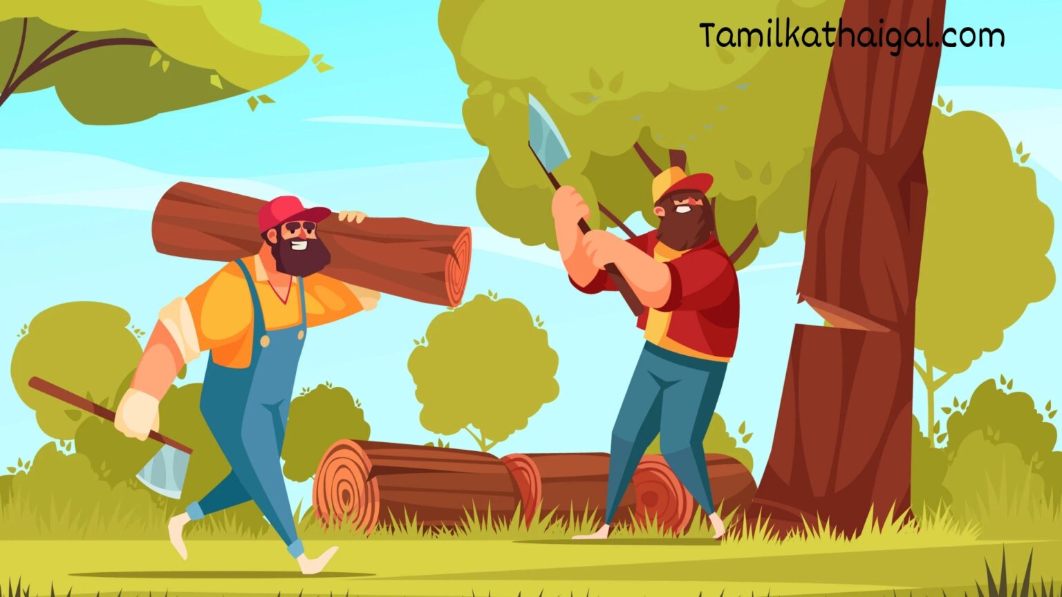 ஓரூரில் ஒரு விறகு வெட்டி இருந்தான். அவன் நாள்தோறும் ஊர் எல்லையில் இருந்து காட்டுக்கு சென்று விறகுகளை வெட்டி அவற்றை ஊர் மக்களிடம் விற்று பிழப்பு நடத்தி வந்தான்.