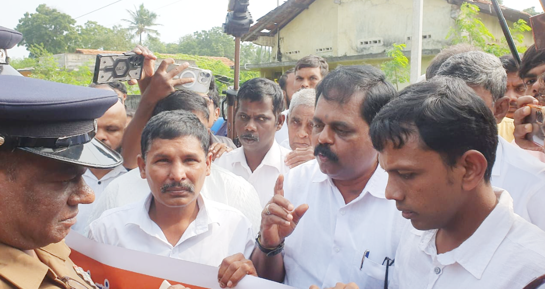 இதன்போது, மக்களுடன் போராட்டத்தில் ஈடுபட்ட நாடாளுமன்ற உறுப்பினர் சிவஞானம் சிறீதரனை பொலிஸார் தள்ளி வீழ்த்த முற்பட்டனர்.