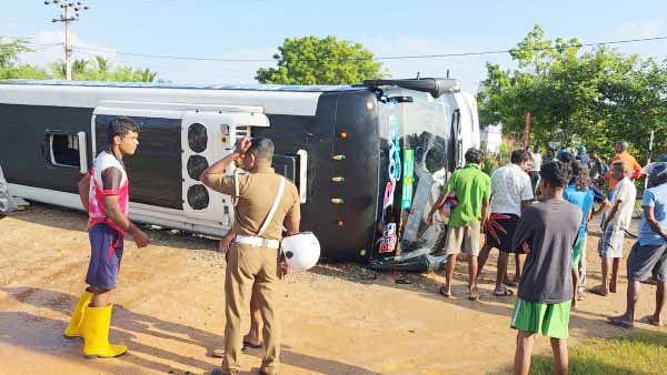 அக்கரைப்பற்றிலிருந்து சுமார் 25க்கும் மேற்பட்ட பயணிகளுடன் திருகோணமலை நோக்கிப் பயணித்த குறித்த சொகுசு பேருந்து, நேற்று வியாழக்கிழமை காலை 7 மணியளவில் மஹிந்தபுர சந்திக்கு அருகில் சென்றபோது விபத்துக்குள்ளாகியது.