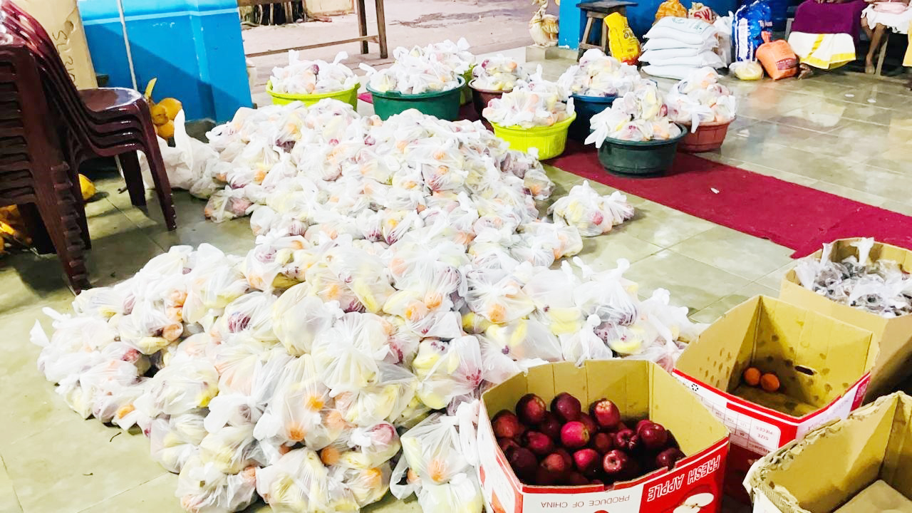 ஐந்தாவது நாளாக சந்நிதியான் ஆச்சிரம முன்றலில் வைத்து சந்நிதியான் ஆச்சிரம நிர்வாகத்தால் இந்த பழப் பொதிகள் வழங்கப்பட்டுள்ளன.