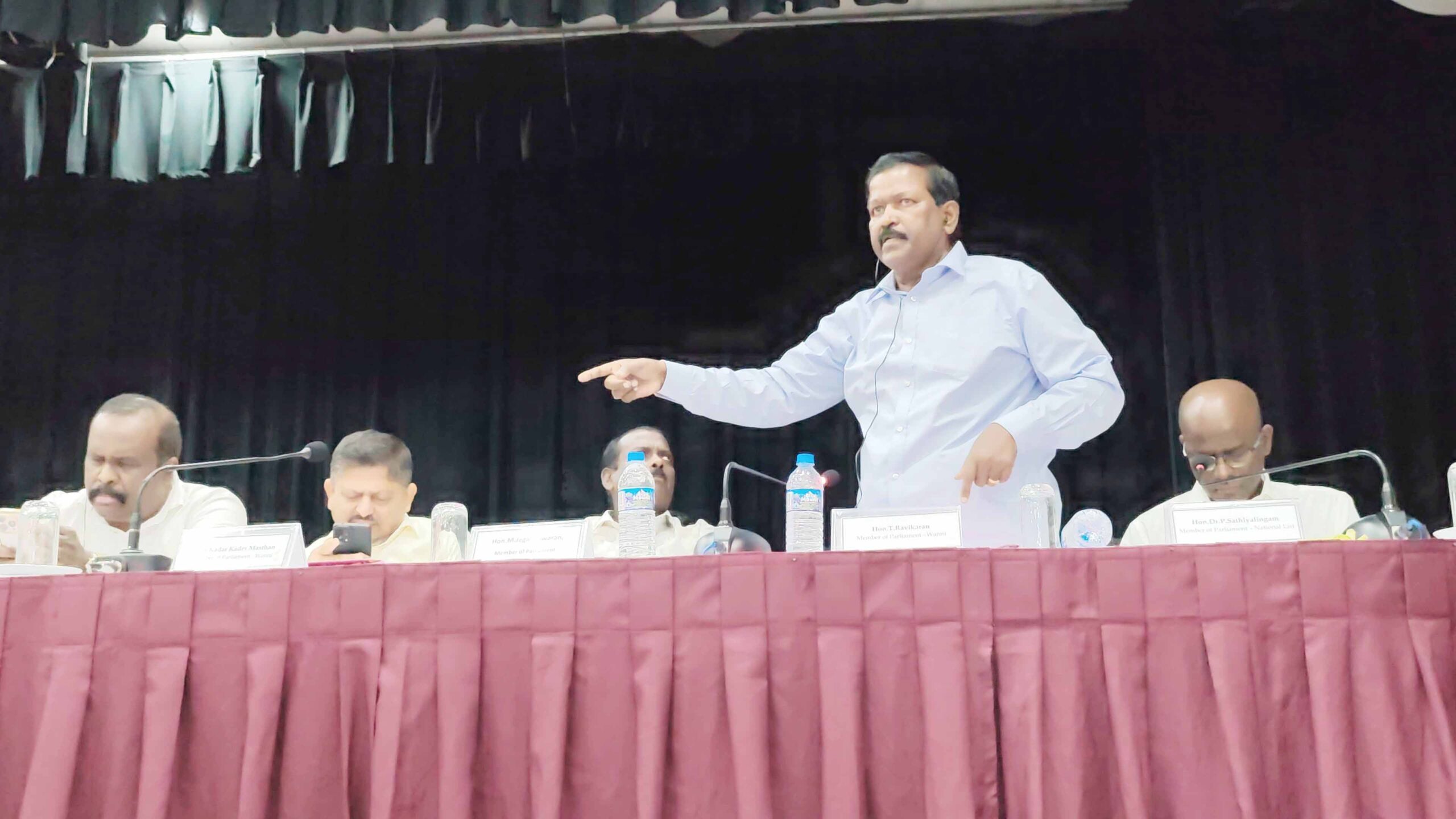 அக்காணிகள் காணிகள் தனியார் காணிகள் எனில், அதுதொடர்பில் மகாவலி அதிகாரசபை அலுவலகத்திற்கு வந்து முறைப்பாடளிக்கமுடியும் எனவும் தெரிவித்தார். இதன்போது நாடாளுமன்ற உறுப்பினர் ரவிகரன் இடையிட்டுக் கருத்துத் தெரிவிக்கையில், மகாவலி அதிகாரசபையிடம் நாமும், எமது தமிழ் மக்களும் வருகைதர வேண்டிய அவசியமில்லை. எமது மக்கள் தமது தேவைகளை நிறைவேற்றுவதற்கும், முறைப்பாடுகளைப் பதிவுசெய்யவும் முல்லைத்தீவு மாவட்ட செயலகத்திற்குத்திற்குத்தான் செல்வார்கள். மக்களுக்கு மாவட்ட செயலகமே பொறுப்பாகும்.