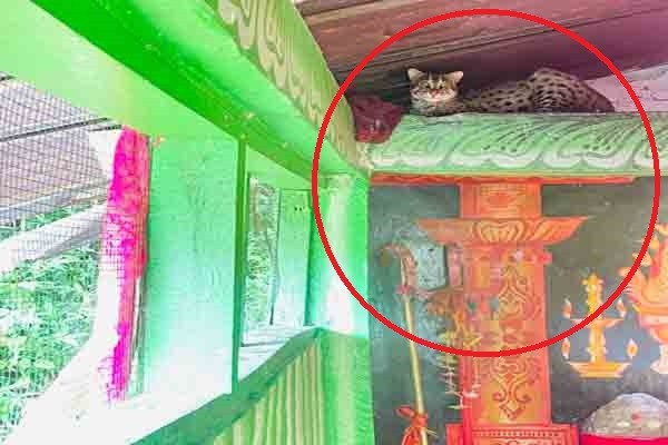 வேலைக்குச் செல்லும் முன் கோயிலுக்குச் சென்று வழிபட்ட தோட்டத் தொழிலாளர்கள், தெய்வத்தின் அருகே வந்த சிறுத்தை கோயிலின் கூரையில் அமர்ந்திருந்ததை கண்டு அதிர்ச்சியடைந்தனர்.