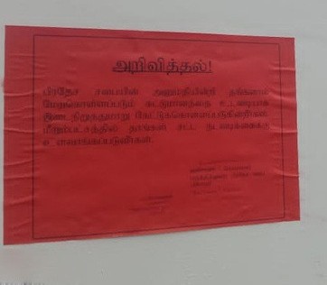 பருத்தித்துறை பிரதேச சபையினால் இந்த சிவப்பு அறிவித்தல் ஒட்டப்பட்டுள்ளது.