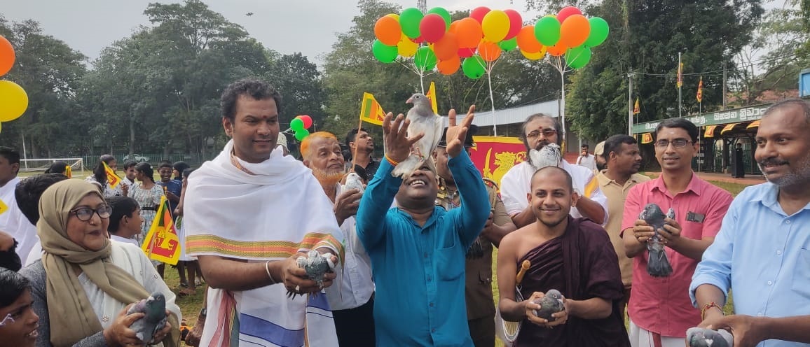 அதனைத் தொடர்ந்து சமாதானப் புறாக்கள் பறக்க விடப்பட்டதுடன், தேசியக் கொடி தாங்கிய பலூன்களும் பறக்கவிடப்பட்டன.