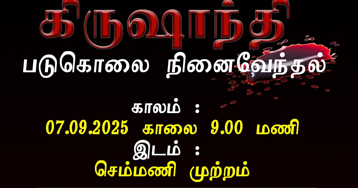 1996 ஆம் ஆண்டு சந்திரிகா அரசாங்கத்தின் ஆட்சிக்காலத்தில் ஸ்ரீலங்கா இராணுவத்தினரால் கைது செய்யப்பட்டு, வல்லுறவுக்குப் பின்னர் படுகொலைக்கு உட்படுத்தப்பட்ட சுண்டுக்குளி மகளீர் உயர்தரப் பாடசாலை மாணவி கிருசாந்தி குமாரசுவாமியின் 29ஆம் ஆண்டு நினைவேந்தல் நிகழ்வு நாளை ஞாயிற்றுக்கிழமை காலை 9மணிக்கு செம்மணி வளைவில் நடைபெறவுள்ளது.