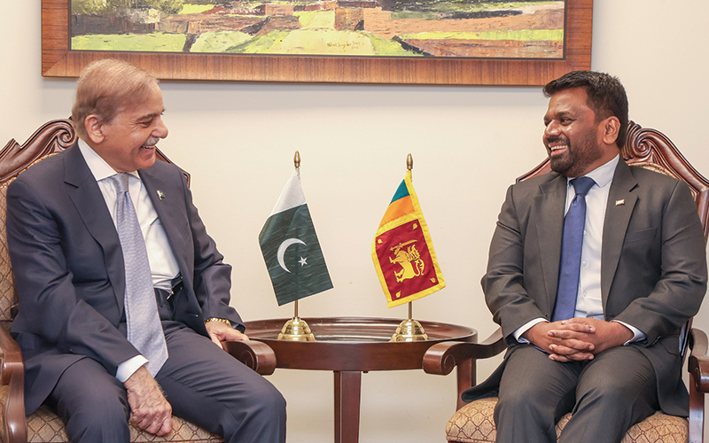 இதன்போது, பாகிஸ்தான் பிரதமர் ஜனாதிபதி அநுரகுமார திசாநாயக்கவை அமோகமாக வரவேற்றதுடன், இலங்கை – பாகிஸ்தான் நீண்டகால நட்புறவை மேலும் வலுப்படுத்தி, இரு நாடுகளுக்கும் இடையிலான ஒத்துழைப்பை மேம்படுத்துவது குறித்து தலைவர்கள் இருதரப்பு கலந்துரையாடல்களில் ஈடுபட்டனர்.