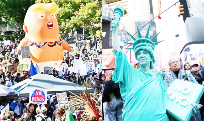 சர்வாதிகார போக்குடன் செயல்படுவதாக டிரம்ப் நிர்வாகத்திற்கு எதிராக அமெரிக்கா முழுவதும் தொடர்ந்து போராட்டங்களை வழிநடத்தி வரும் பல இடதுசாரி சார்பு அமைப்புகளின் கூட்டணியே நோ கிங்ஸ் ஆகும்.