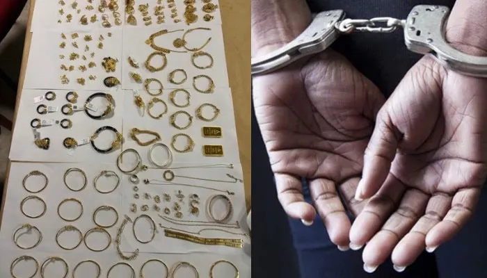 இந்த நிலையில், அவரின் பயணப்பொதியில் 1.163 கிலோகிராம் எடையுள்ள நகைகள் மற்றும் தங்க பிஸ்கட்டுகள் காணப்பட்டதாக சுங்க அதிகாரிகள் தெரிவித்தனர்.