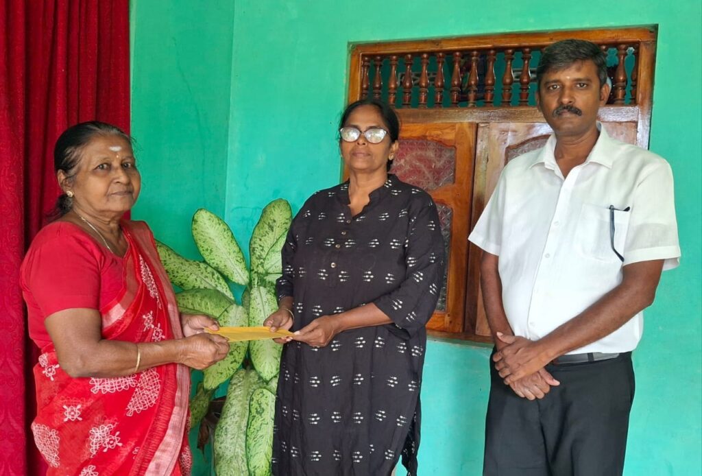அதற்மைய, நிகழ்வரங்கில் தேறிய நிதித் தொகையை அந்த அரசியல் கைதியின் தாயாரான செல்லையா பவளவள்ளி தமிழ் அரசியல் கைதிகளின் விடுதலைக்காக செயற்பட்டு வருகின்ற தன்னார்வ மனிதநேய செயலமைப்பான ‘குரலற்றவர்களின் குரல்’ அமைப்பின் ஒருங்கிணைப்பாளர், மு.கோமகன் மற்றும் செயற்பாட்டாளர் திருமதி போ.அருள்வந்தனா ஆகியோரிடம் கையளித்துள்ளார்.
