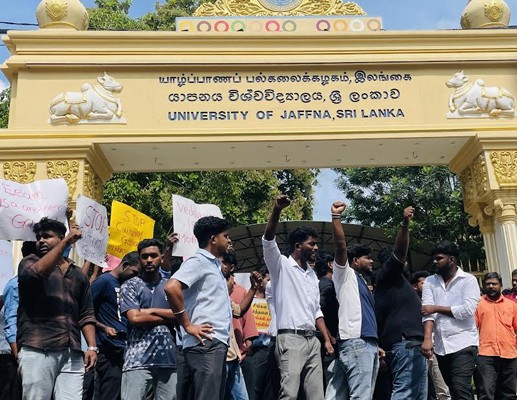 தையிட்டி விகாரை அமைக்கப்பட்டதை எதிர்த்து, யாழ்ப்பாண பல்கலைக்கழக மாணவர்கள் பல்கலைக்கழகத்துக்கு முன்பாக இன்று போராட்டத்தில் ஈடுபட்டனர்.