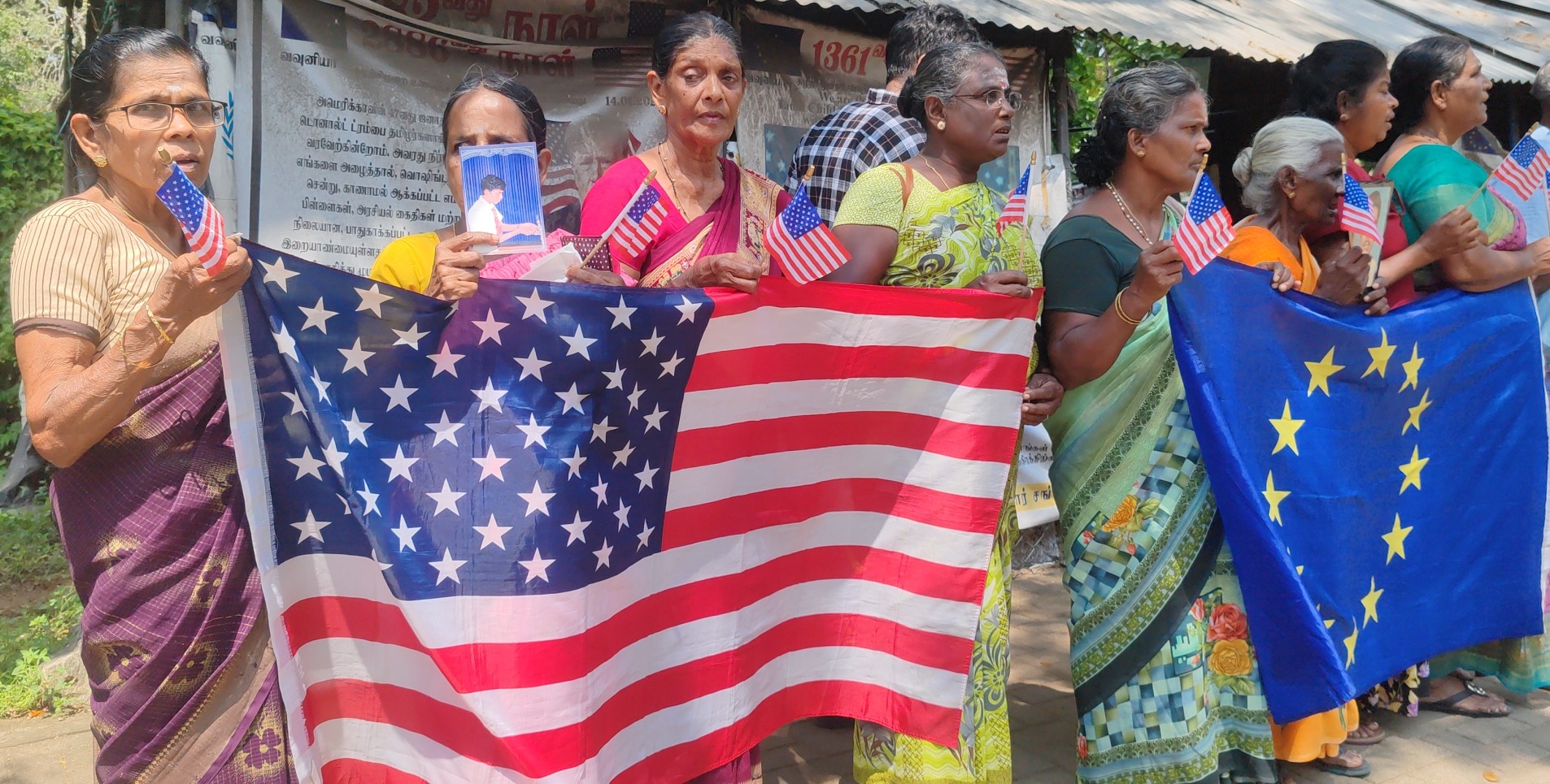 இதன்போது காணாமல்போன உறவுகளின் படங்களினை ஏந்தியவாறும், அமெரிக்க மற்றும் ஐரோப்பிய ஒன்றியக் கொடிகளை ஏந்தியவாறும் ஆர்ப்பாட்டத்தில் ஈடுபட்டனர்.