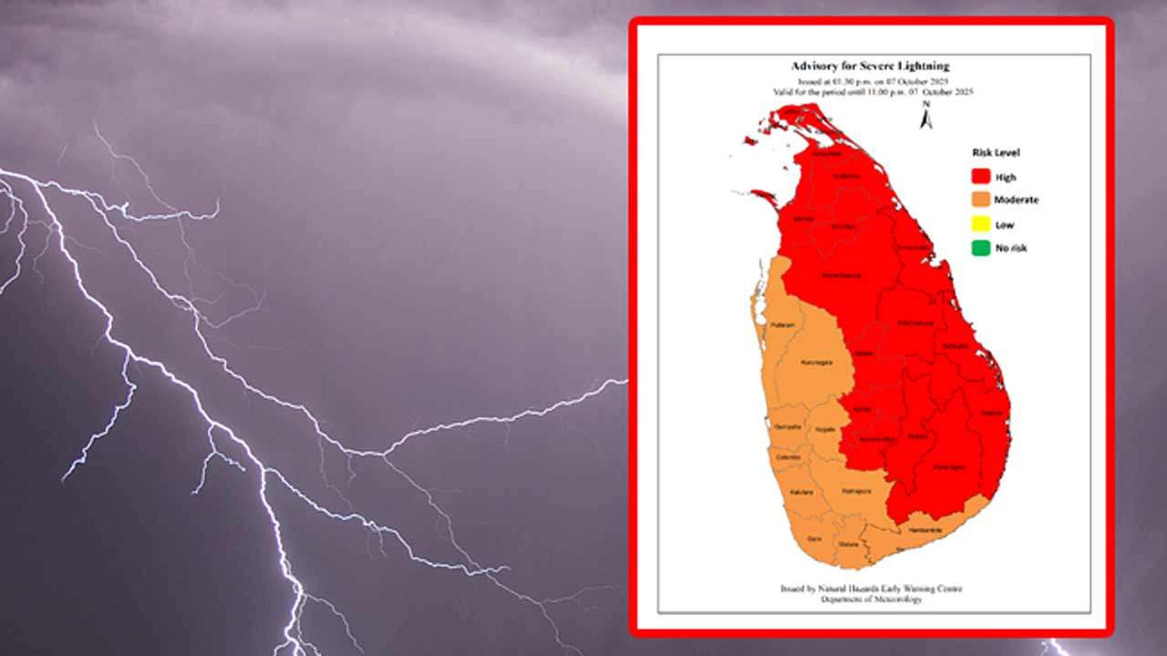 இன்று இரவு 11 மணி வரை செல்லுபடியாகும் வகையில் வளிமண்டலவியல் திணைக்களம் பலத்த மின்னல் குறித்து எச்சரிக்கை அறிக்கை ஒன்றை வெளியிட்டுள்ளது.