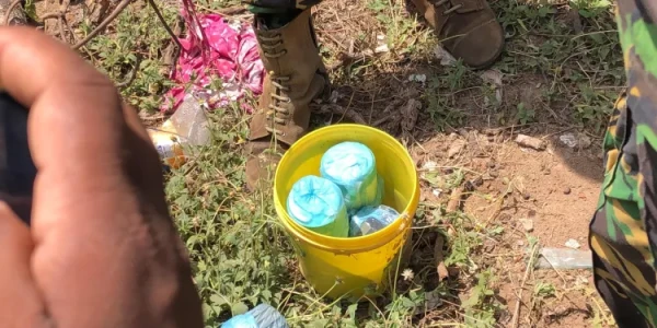 இதன்போது புதைக்கபட்டிருந்த நிலையில் அடைக்கப்பட்ட வாளியொன்றினுள் இருந்து நான்கு கைக்குண்டுகள் மீட்கப்பட்டுள்ள