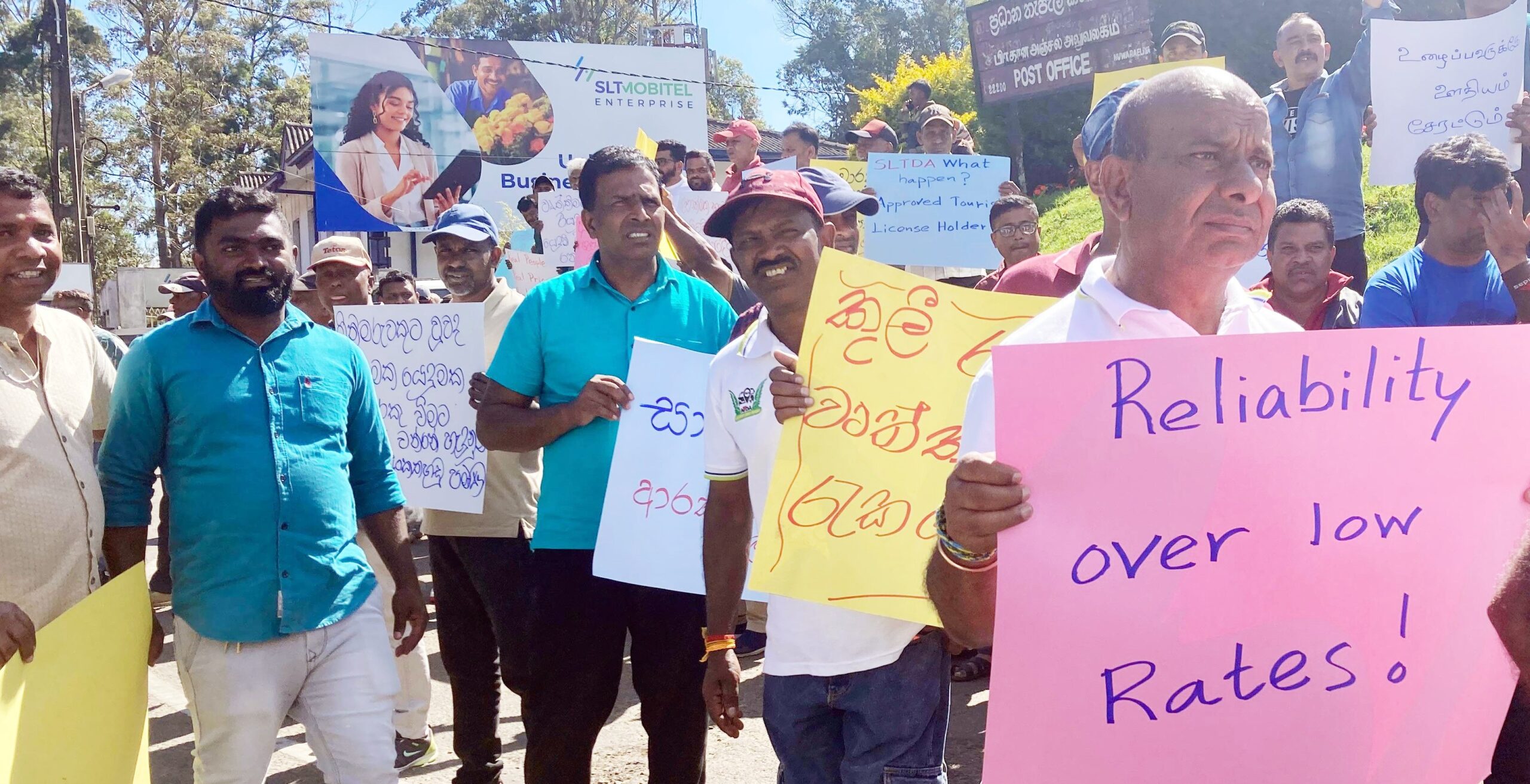 பிக்மீ செயலிக்கு எதிராக நுவரெலியா மாவட்டத்தில் முச்சக்கரவண்டி மற்றும் வாகன சாரதிகள் போராட்டம் ஒன்றை நடத்தினர்.