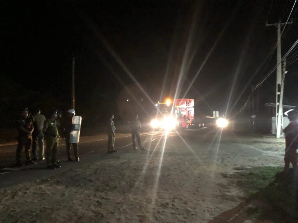 குறித்த பகுதியில் நின்ற மக்கள் அவ்விடத்தில் இருந்து சென்ற நிலையில் இன்றைய தினம் அதிகாலை 2.30 மணியளவில் நூற்றுக்கணக்கான பொலிஸார் மற்றும் கலகம் அடக்கும் பொலிஸாரின் பாதுகாப்புடன் காற்றாலை மின் கோபுரங்களை ஏற்றிய வாகனம் மன்னாரை நோக்கிச் சென்றது.