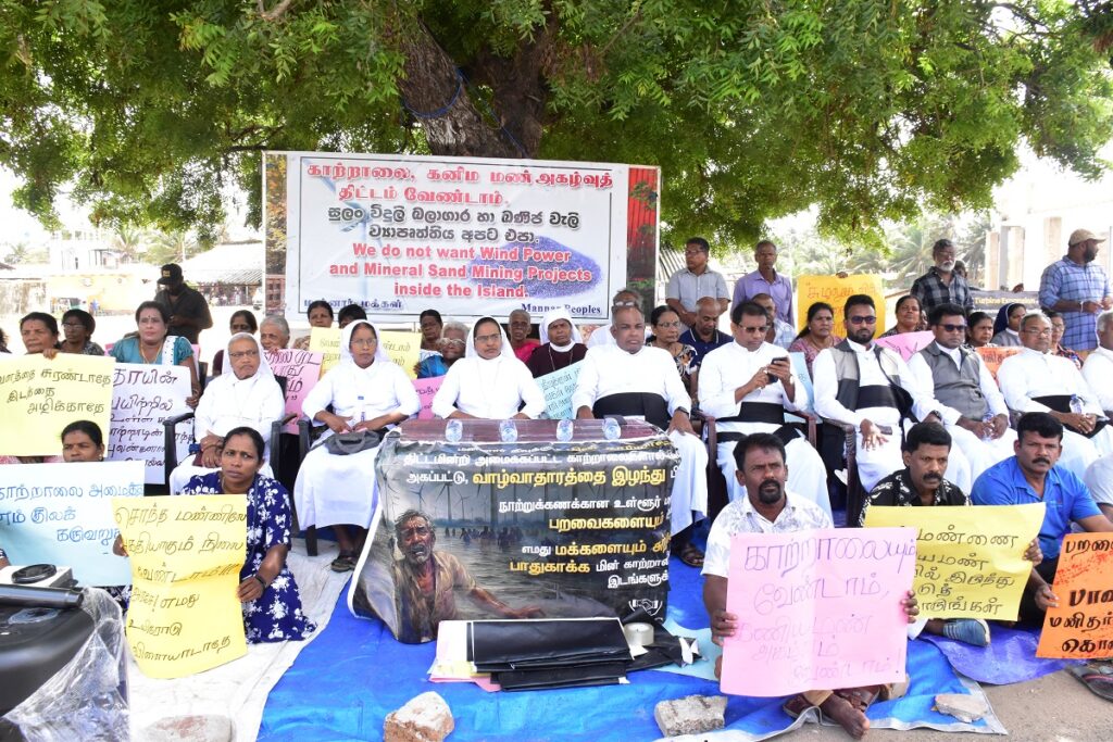 மன்னாரில் காற்றாலை கோபுரங்கள் அமைத்தல் மற்றும் கனிய மணல் அகழ்வு ஆகியவற்றுக்கு எதிராக முன்னெடுக்கப்பட்டு வரும் கவனயீர்ப்பு போராட்டம் இன்று வியாழக்கிழமை 33 ஆவது நாளை எட்டியுள்ளது.
