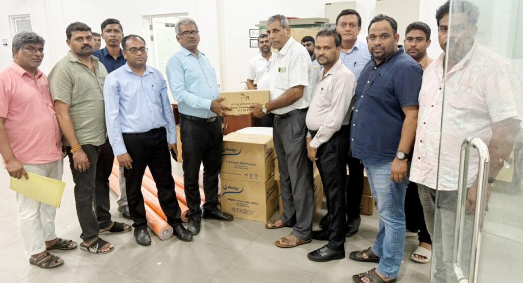 குறித்த நிவாரணப் பொருட்கள் மாவட்ட செயலகம் ஊடாக பாதிக்கப்பட்ட மக்களை சென்றடையவுள்ளன.