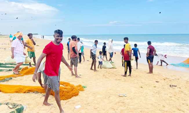 இதன்போது கரைவலையில் பிடிக்கப்பட்ட மீன்பிடிகளை கரைக்கு எடுத்து வந்து, வாடிக்கையாளர்களுக்கான நாள் விற்பனை சந்தைப்படுத்தலை மீனவ சம்மாட்டிமார்கள், கடற்றொழிலாளர்கள், நாளாந்தம் கூலிவேலை செய்யும் குடும்ப மீனவர்கள் முன்னெடுத்தனர்.