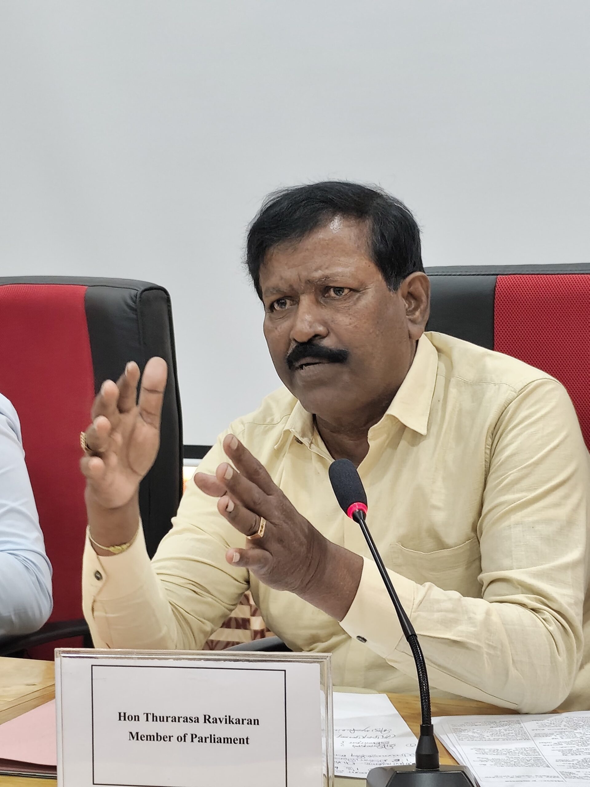 கரைதுறைப்பற்று பிரதேச அபிவிருத்தி ஒருங்கிணைப்பு குழு கூட்டம் நேற்றுமுன்தினம் இடம்பெற்றது. இதன்போது கருத்து தெரிவித்த நாடாளுமன்ற உறுப்பினர் து.ரவிகரன், மாவ ட்டத்தில் சுமார் 3,389 குடும்பங்களுக்கு காணிகள் இல்லை. அவர்களுக்கு காணிகளை வழங்க நடவடிக்கை எடுக்கப்படவேண்டும். புதுக்குடியிருப்பில் 1500 குடும்பங்களுக்கு காணிகள் இல்லை. மாந்தை கிழக்கு, துணுக்காய், ஒட்டுசுட்டான் பிரதேசங்களிலும் காணியற்ற மக்கள் உள்ளனர். கரைதுறைப்பற்றில், 700 இற்கும் மேற்பட்ட குடும்பங்கள் காணிகளின்றி இருப்பதாக பிரதேச செயலக தகவல்கள் தெரிவிக்கின்றன. ஆகவே காணிகளுக்காக விண்ணப்பித்துள்ள எமது மக்களுக்கு விரைவில் காணிகளை வழங்குவதற்க நடவடிக்கைகளை மேற்கொள்ளவேண்டும்.