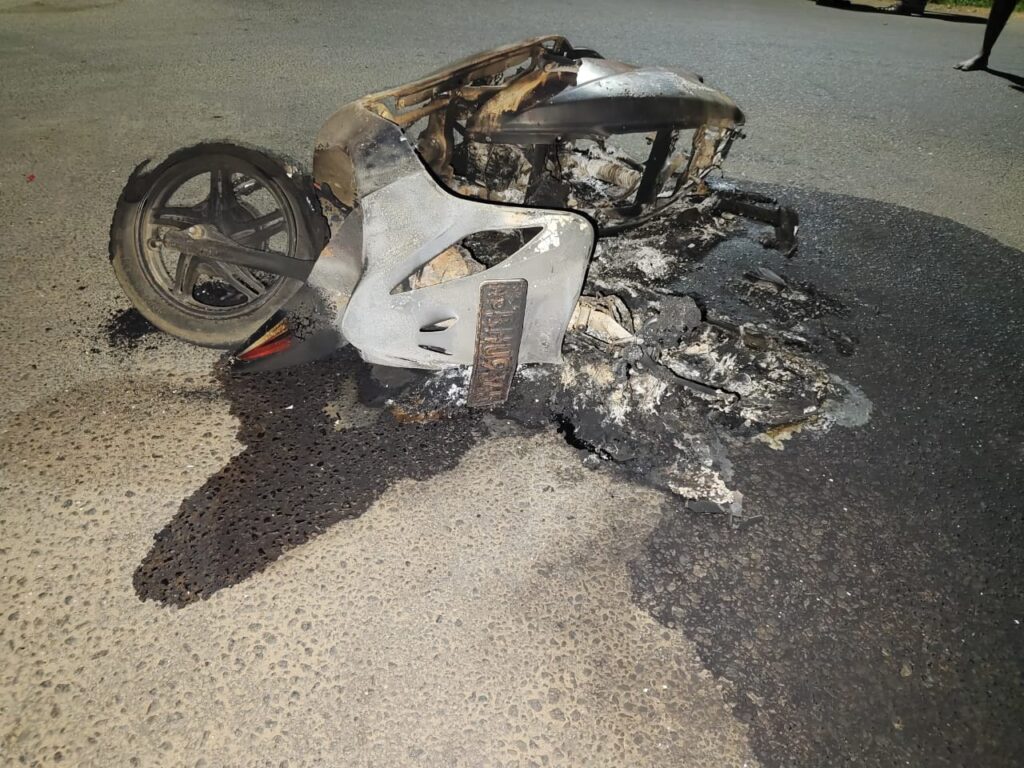 மேலும், அதே இடத்தில் நிறுத்தப்பட்டிருந்த மோட்டார் சைக்கிளையும் வீட்டிலிருந்து எடுத்துச் சென்று, சுமார் ஒரு கிலோமீட்டர் தொலைவில் உள்ள மல்லாகம் வீதி, மாசியப்பிட்டி சந்தியின் நடுவில் தீ வைத்துள்ளனர்.