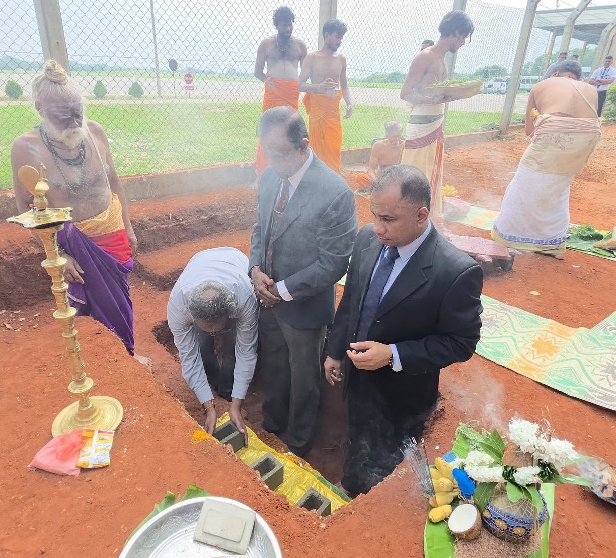 இந்த நிகழ்வில், யாழ்ப்பாண விமான நிலையத்தலைவர் சமன் அமரசிங்க, விமான நிலைய இணை முகாமைத்துவத் தலைவர் சஞ்சீவ அமரபதி, இலங்கை விமான நிலைய ஆணைக்குழுவின் பிரதித் தலைவர், பொறியியலாளர் ஆகியோரால் சர்வமத வழிபாடுகளோடு அடிக்கல் நாட்டப்பட்டது.