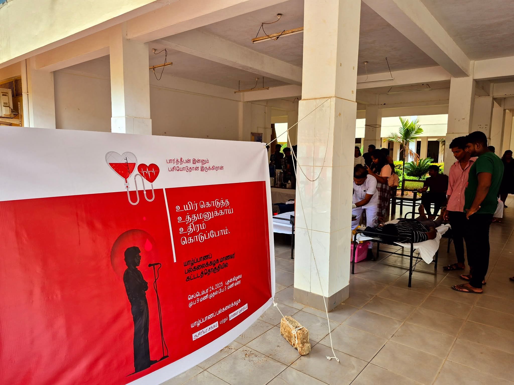 கலைப்பீட முன்றலில் கைலாசபதி கலையரங்கிற்கு அருகாமையில் தற்போது திலீபனை நினைவுகூரும் வகையில் இரத்த தானம் இடம்பெற்று வருகின்றது.