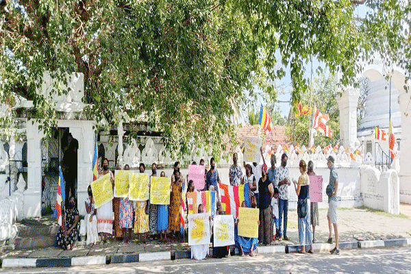 விளக்கமறியலில் வைக்கப்பட்டுள்ள பௌத்த பிக்குகள் உள்ளிட்ட 10 பேரையும் பிணையில் விடுதலை செய்யக்கோரி திருகோணமலை சங்கமித்தை விகாரைக்கு முன்பாக, நேற்று செவ்வாய்க்கிழமை காலை கவனயீர்ப்பு ஆர்ப்பாட்டமொன்று முன்னெடுக்கப்பட்டது.