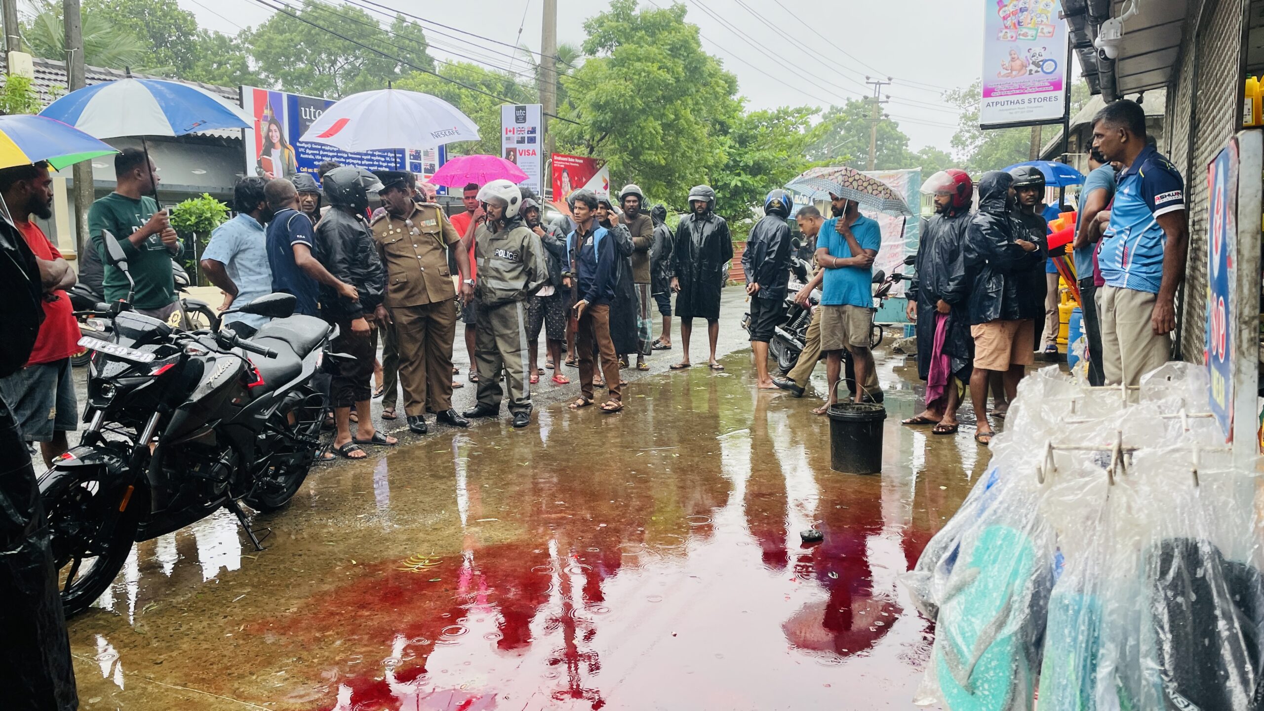 வெட்டுக் காயங்களுடன் ஐம்பது மீற்றர் தூரம் வரை ஓடிச் சென்று வர்த்தக நிலையம் ஒன்றின் முன்பாக குற்றுயிருடன் விழுந்து கிடந்தாக, சம்பவத்தை நேரில் கண்டவர்கள் கூறினர். சிசிரி கமராக்கள் மூலம் குற்றவாளிகள் விரைவில் கைது செய்யப்படுவர் என பொலிஸார் தெரிவித்தனர்.