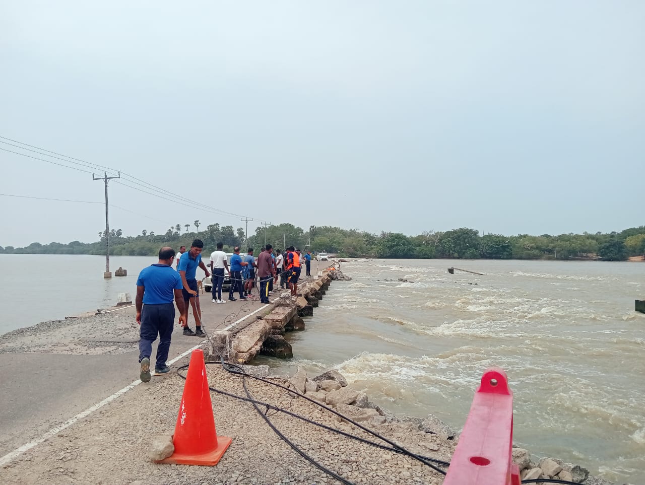 குறித்த தொலைத்தொடர்பு நிறுவனத்தின் உத்தியோகத்தர்கள் வட்டுவாகல் பாலத்தினுள், ஓடும் தண்ணீருக்குள் இறங்கி, வயர்களை எடுத்து சீர்செய்யும் பணிகளை ஆரம்பித்தனர்.