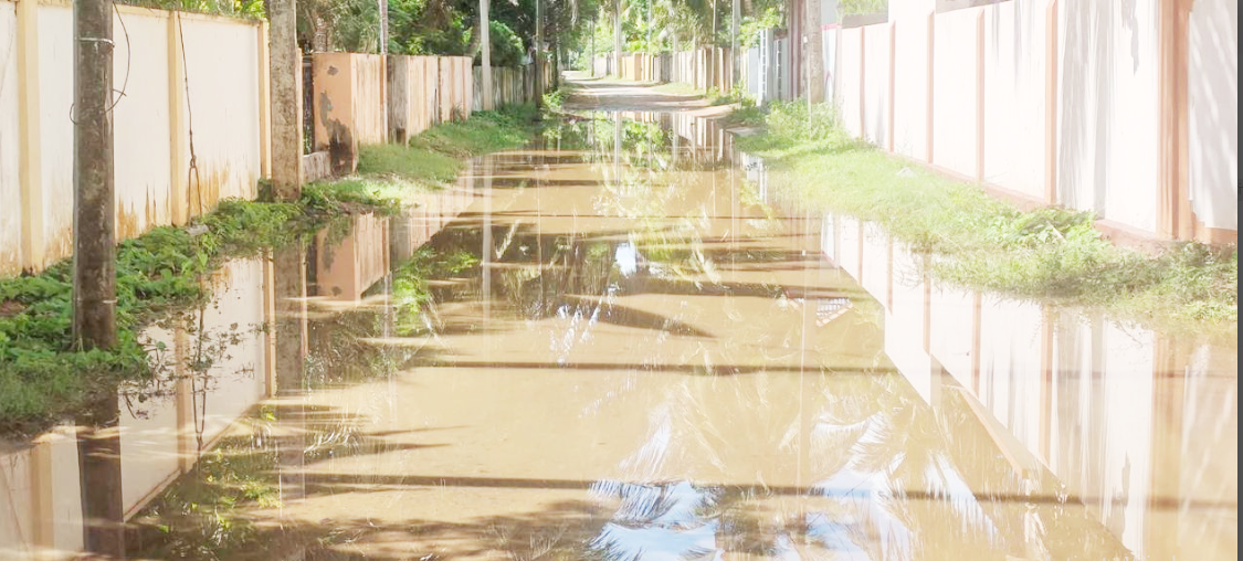 இதையடுத்து வீதியில் இறக்கப்பட்ட கட்டுமான பொருட்கள் மீள ஏற்றப்பட்டு வேறு பகுதிக்கு கொண்டு செல்லப்பட்டன.மழை காலங்களில் வீதியில் வெள்ளம் தேங்கி நிற்பதால் நாம் பயணிப்பதில் சிரமங்களை எதிகொண்டு வருகின்றோம்.