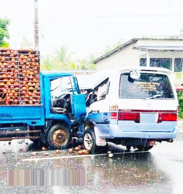 சிலாபம் – வாரியபொல வீதியில் பிங்கிரிய நகரில் இந்த விபத்து இடம்பெற்றுள்ளது. இந்தப் பகுதியில் தொடர்ச்சியாக மழை பெய்துவரும் நிலையில் ஹயஸ் வாகனத்தின் பிரேக்குகள் முறையாக செயற்பட முடியாமல் வாகனம் இழுத்துச் செல்லப்பட்டு எதிரே வந்த லொறியு டன் மோதியுள்ளது. இதனால் இரு வாகன சாரதிகளும் காயமடைந்துள்ளதாக தெரிவிக்கப்படுகின்றது.