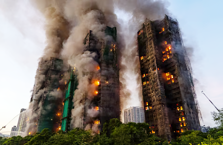 இதற்கிடையே இந்த அடுக்குமாடி குடியிருப்பில் புதுப்பிக்கும் பணி நடந்து கொண்டிருந்தபோது அங்கு கட்டப்பட்டிருந்த மூங்கில் சாரத்தில் திடீரென தீப்பிடித்து கட்டிடங்களுக்கு வேகமாக பரவியது. இதில் பலத்த காற்று காரணமாக 7 கட்டிடங்களில் தீ கொளுந்துவிட்டு எரிந்தது.