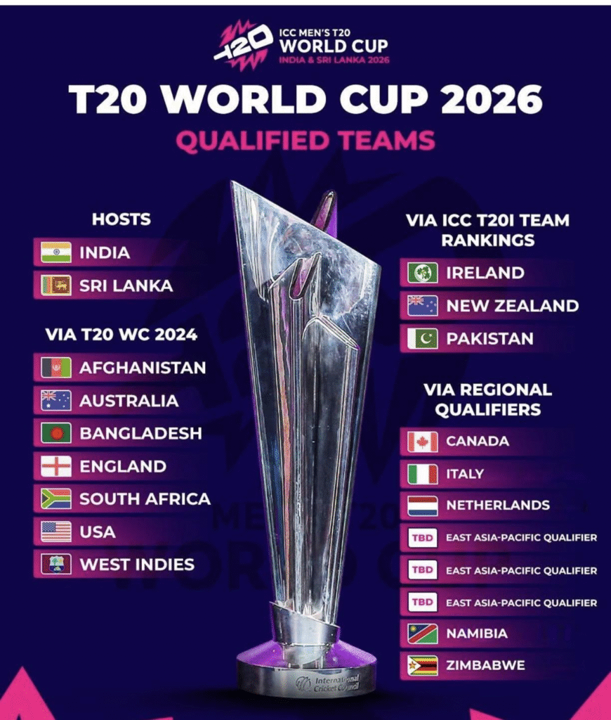 2026 டி – 20 உலகக்கிண்ண கிரிக்கெட் போட்டிக்கு வெவ்வேறு பிரிவுகளின் கீழ் தகுதி பெற்ற அணிகளின் விவரங்கள் :