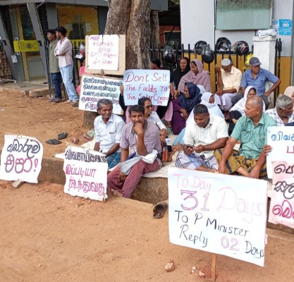 திருகோணமலை முத்து நகர் விவசாயிகள் விவசாய நில அபகரிப்புக்கு எதிராக 31ஆவது நாளாக தொடர் சத்தியாக்கிரக போராட்டத்தில் ஈடுபட்டு வருகின்றனர்.