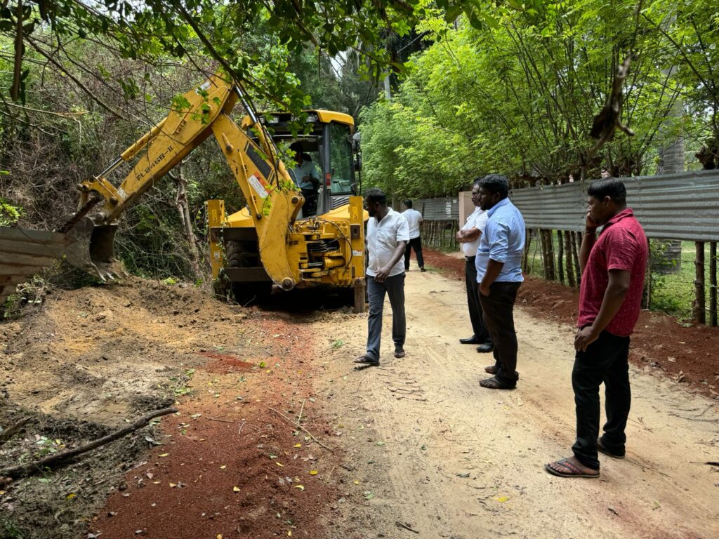 குளம் தூர்வாரும் பணியினை நகரசபை தவிசாளர் வ.ஶ்ரீபிரகாஷ், உபதவிசாளர் ஞா.கிஷோர், செயலாளர் எஸ்.நிசான் ஆகியோர் உத்தியோகபூர்வமாக ஆரம்பித்து வைத்தனர்.